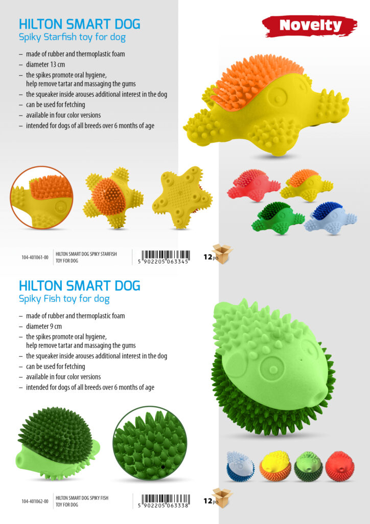8 February 2024 HILTON SMART DOG - new toys for dog SEE PRODUCTS Categories: Dogs, ToysHILTON SMART DOG SPIKY STARFISH TOY FOR DOG104-401061-00 – made of rubber and thermoplastic foam – Categories: Dogs, ToysHILTON SMART DOG SPIKY FISH TOY FOR DOG104-401062-00 – made of rubber and thermoplastic foam – Categories: Dogs, ToysHILTON SOFT SQUEAK PLUSH TOY FOR DOG104-402301-00 - made of soft, pleasant to the touch