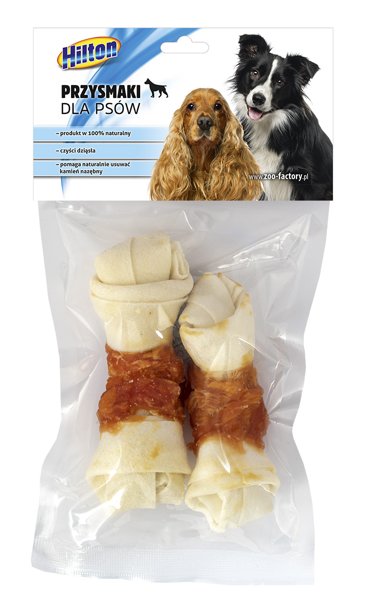 Home>Nasze produkty>Dogs>Treats>HILTON KNOTTED WHITE BONE WITH DRIED MEAT LENGTH 11,5CM (2 PCS) FOR DOG