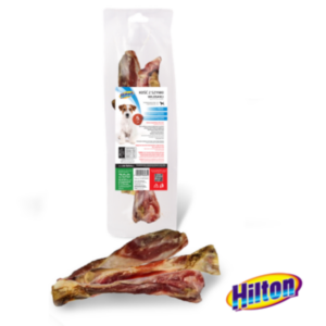 Natural bones wrapped with dried duck meat.Hilton bones with duck meat contain calcium necessary to make bones and teeth stronger and keep gums healthy. Calcium protects the dog’s body from harmful effect of heavy metals.