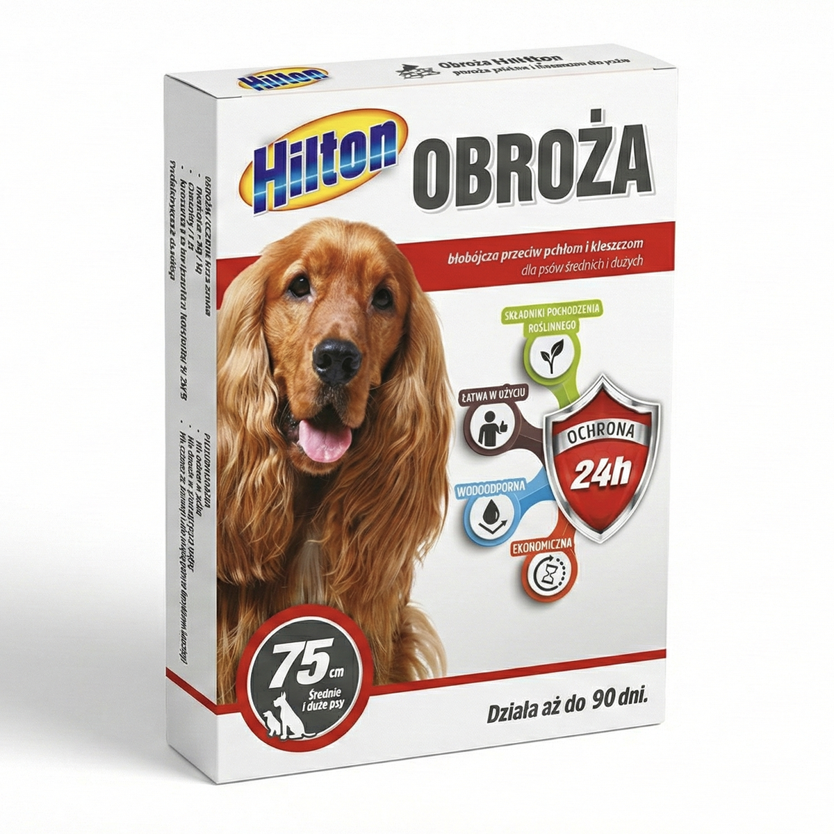 HILTON OBROŻA BIOBÓJCZA PRZECIW PCHŁOM I KLESZCZOM DLA PSÓW ŚREDNICH I DUŻYCH DŁ.75CM